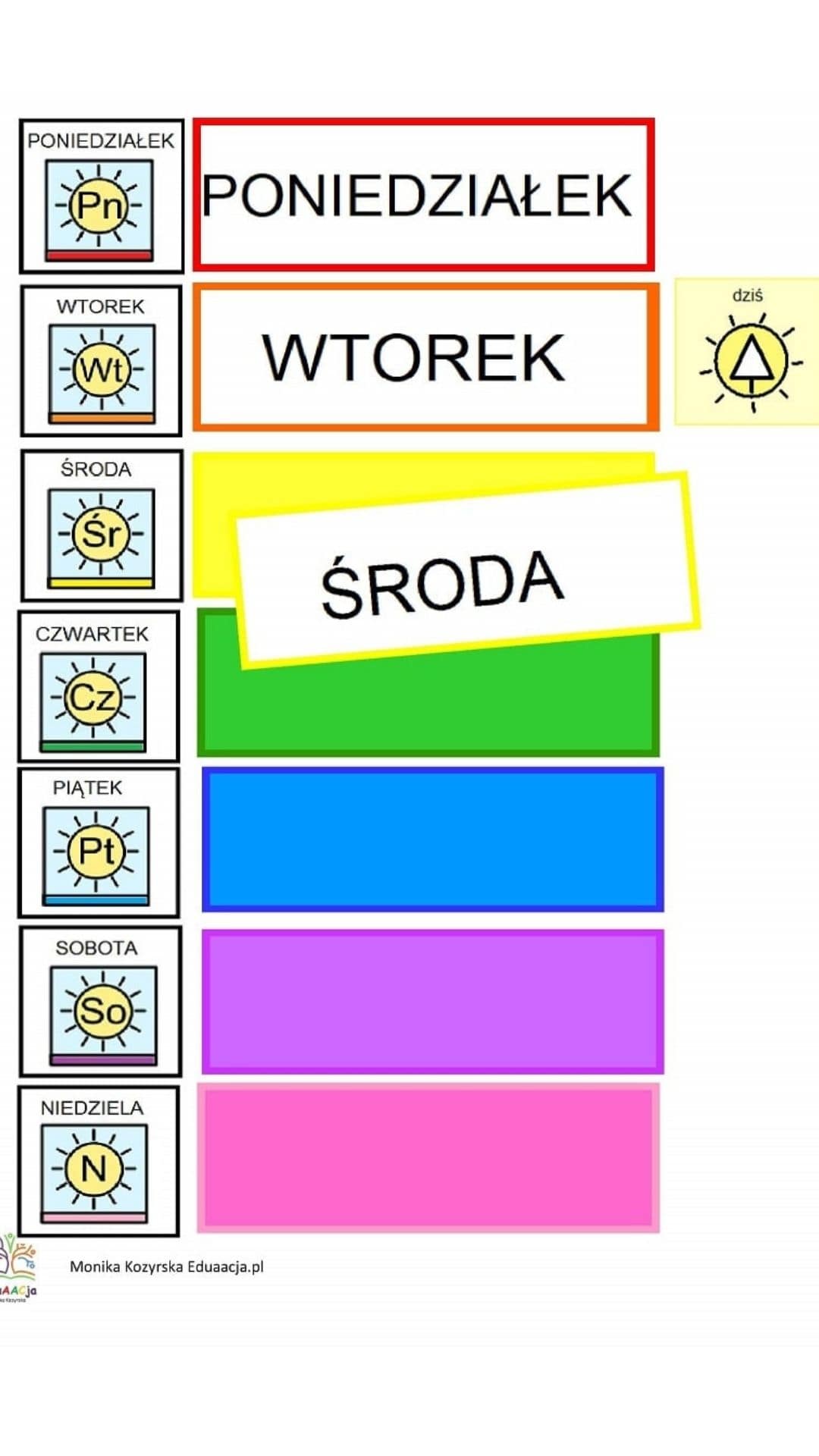 Cel: Kolejny krok to nazwy i kolejność dni tygodnia.