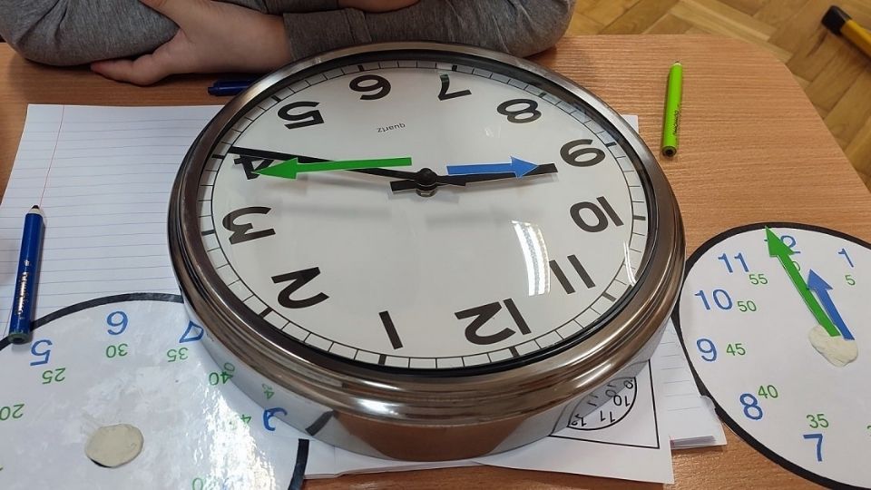 Cel: Czas na poznanie różnicy między wskazówką godzinową a minutową.