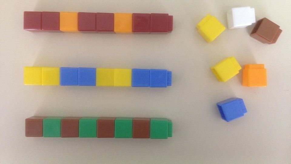 • układanie wzorów 2–3-elementowych i ich kontynuacja,
