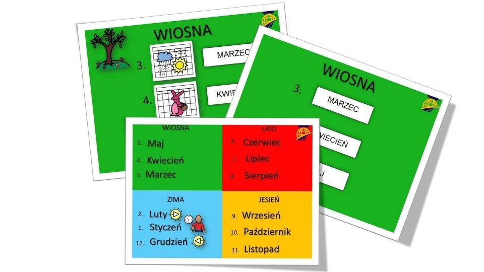 • Jeśli dziecko rozpoznaje symbole – pracujemy na symbolach pór roku.