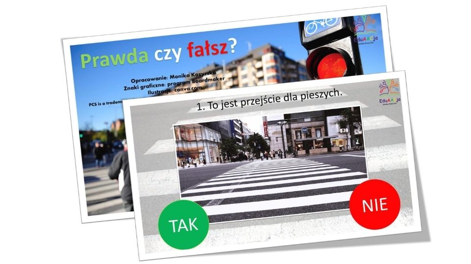 Zestaw interaktywnych pytań i zadań opartych na ilustracjach. Dzieci uczą się odpowiadania na pytania, logicznego wnioskowania i utrwalają zasady bezpiecznego zachowania się na ulicy.