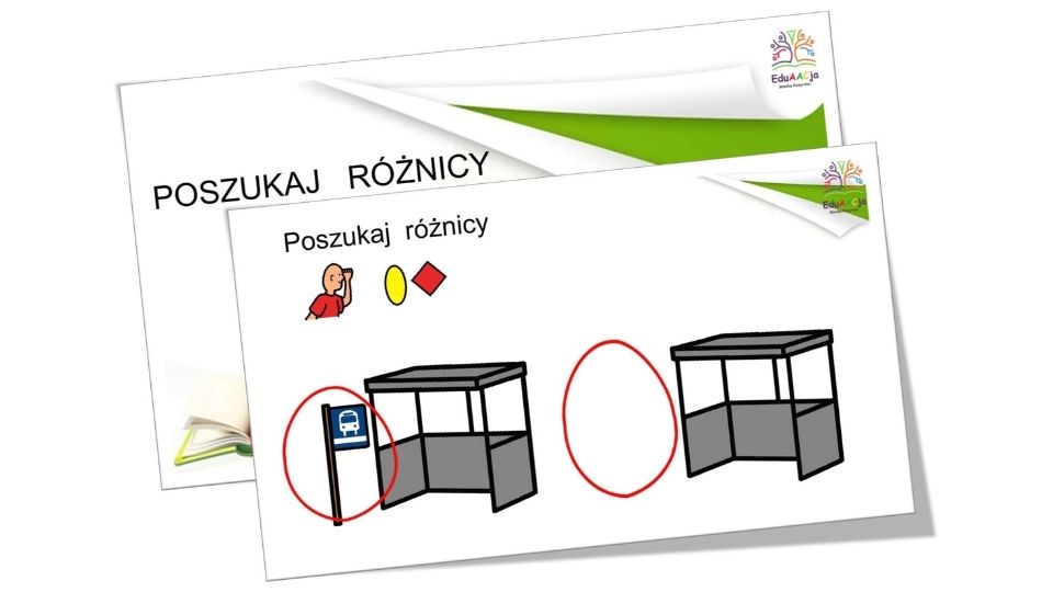 Zadanie polegające na porównaniu dwóch obrazków i wskazaniu różnic. Ćwiczenie wspiera analizę wzrokową, koncentrację oraz rozwój językowy dziecka.