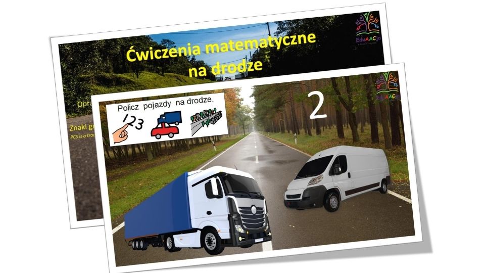 Zadania matematyczne oparte na tematyce ruchu drogowego. Uczniowie przeliczają pojazdy, rozpoznają cyfry i rozwijają kompetencje matematyczne poprzez działanie.