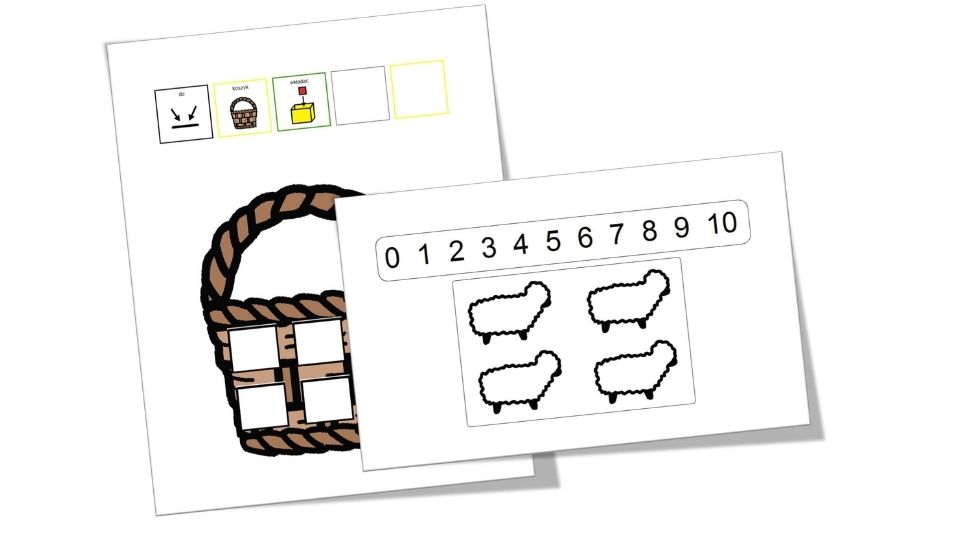 1. Koszyk: „do koszyka wkładam”- zapisujemy ilość wybranych elementów, które dziecko musi włożyć do koszyka