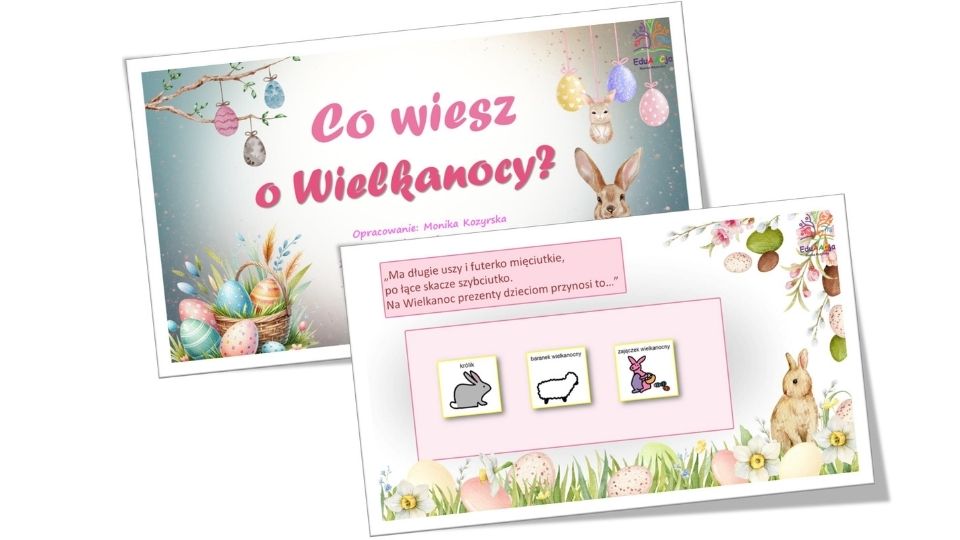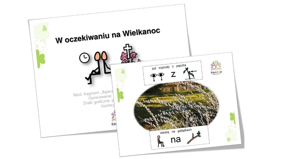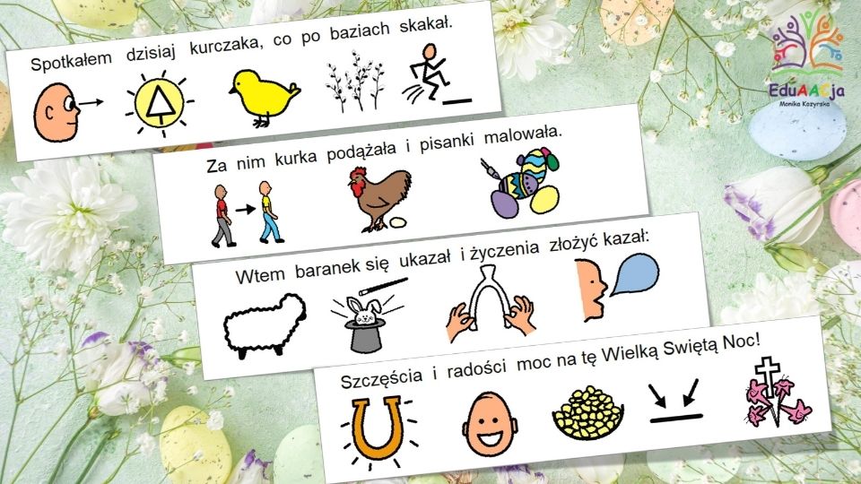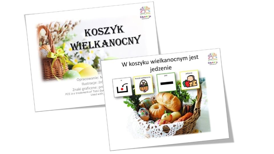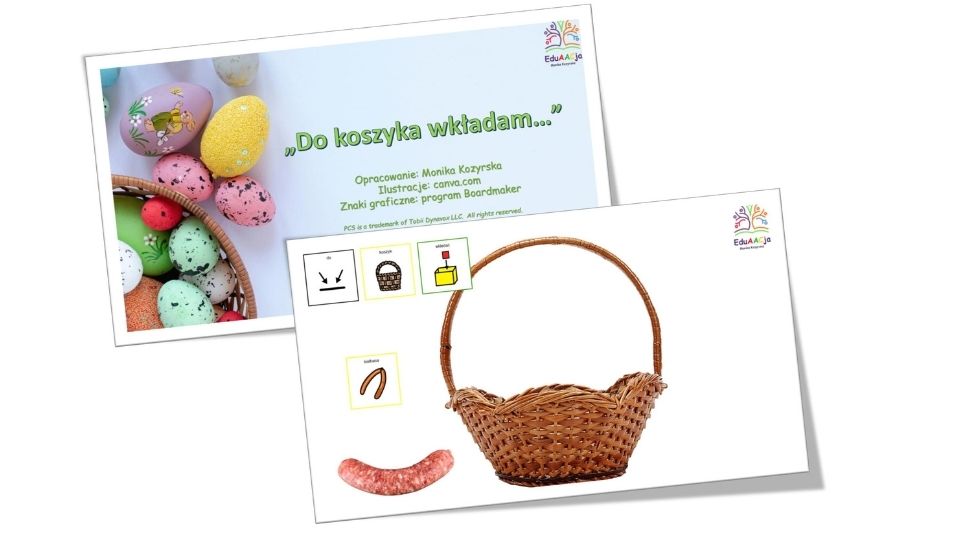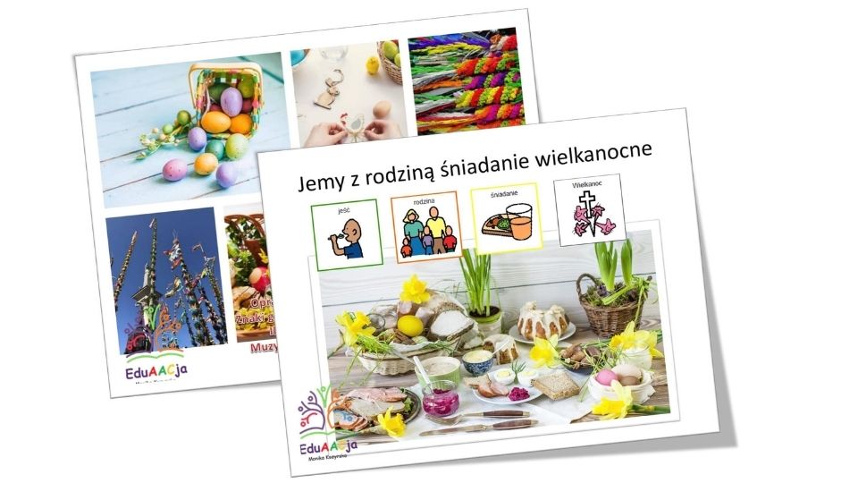 Pakiet Edukacyjny „Wielkanocne przygotowania” to kompletny zestaw materiałów na tydzień zajęć tematycznych poświęconych tematyce świąt Wielkanocnych. Został opracowany z myślą o dzieciach o zróżnicowanych możliwościach poznawczych, komunikacyjnych i manualnych. Wszystkie treści wzbogacono o symbole Boardmaker (PCS), które wspierają rozwój słownika oraz komunikacji alternatywnej i wspomagającej (AAC).