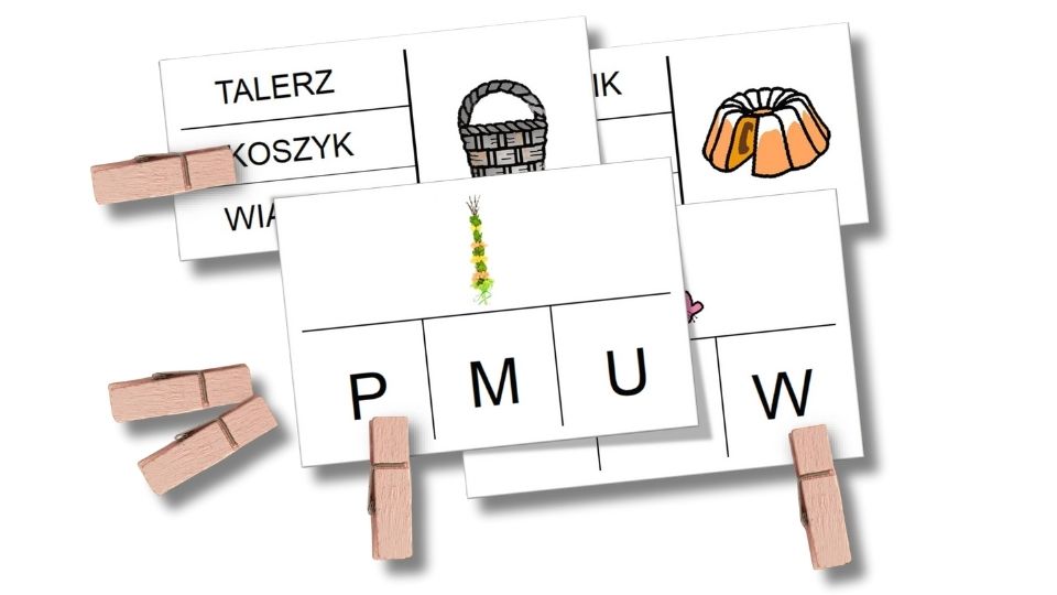 Materiał do wydrukowania i rozwijania kompetencji czytelniczych do wykorzystania ze spinaczami lub plasteliną do oznaczania właściwych elementów w dwóch wersjach.                  Rozwija: czytanie globalne, percepcję wzrokową, motorykę małą, koordynację ręka–oko i logiczne myślenie.