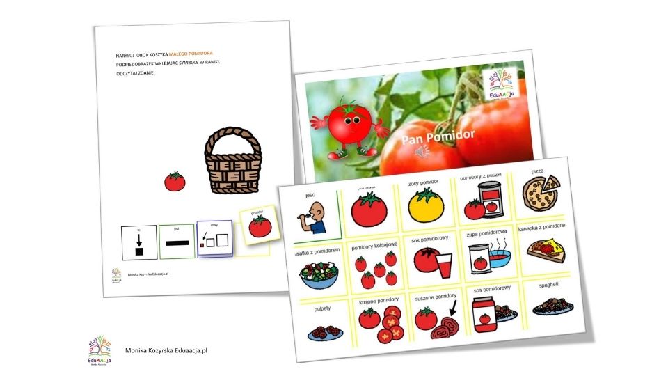 Zajęcia skoncentrowane wokół pomidora – w różnych formach i kontekstach. Dzieci uczą się rozpoznawać warzywo, utrwalać jego nazwę i symbol PCS, a także ćwiczą spostrzegawczość.