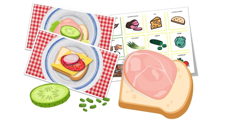 Prezentacja pokazująca różnorodne kanapki przygotowane z nowalijek. Zachęca do rozmowy o zdrowym jedzeniu, kolorach i składnikach potraw. Materiał rozwija: świadomość zdrowego odżywiania, słownictwo, klasyfikację i kreatywność.