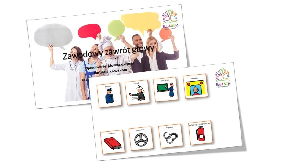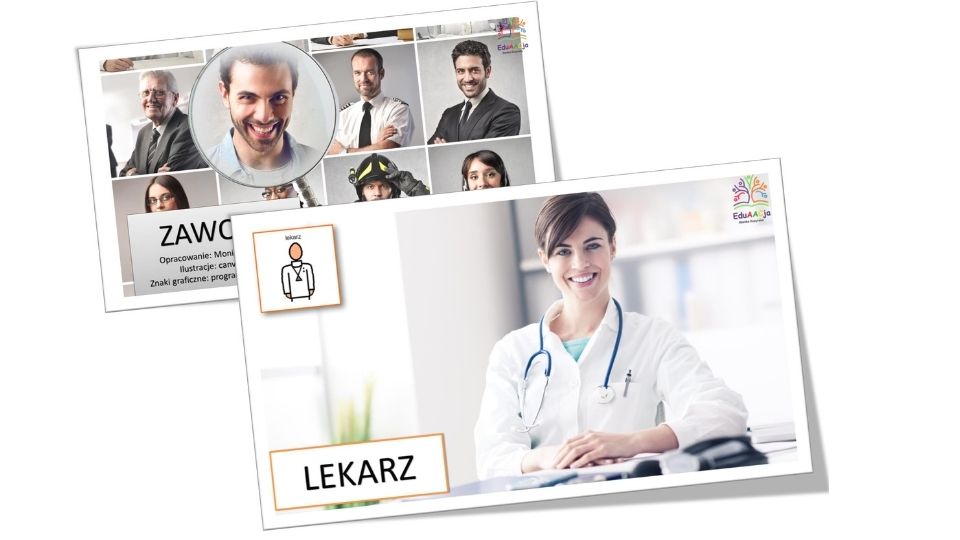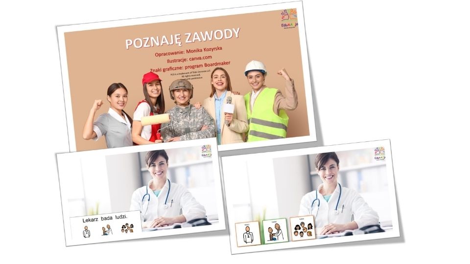• Pakiet Edukacyjny „Zawody” to kompletny zestaw materiałów na tydzień zajęć tematycznych poświęconych zawodom wykonywanym przez ludzi. Został opracowany z myślą o dzieciach o zróżnicowanych możliwościach poznawczych, komunikacyjnych i manualnych. Wszystkie treści wzbogacono o symbole Boardmaker (PCS), które wspierają rozwój słownika oraz komunikacji alternatywnej i wspomagającej (AAC).