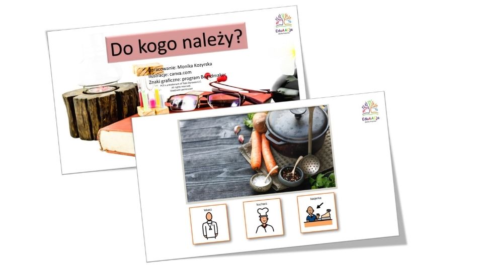 Tym razem czas na atrybuty, każdego zawodu. W tym przypadku prezentacja również stanowi interaktywne zadania, a materiał pdf umożliwia ćwiczenia w danej tematyce.