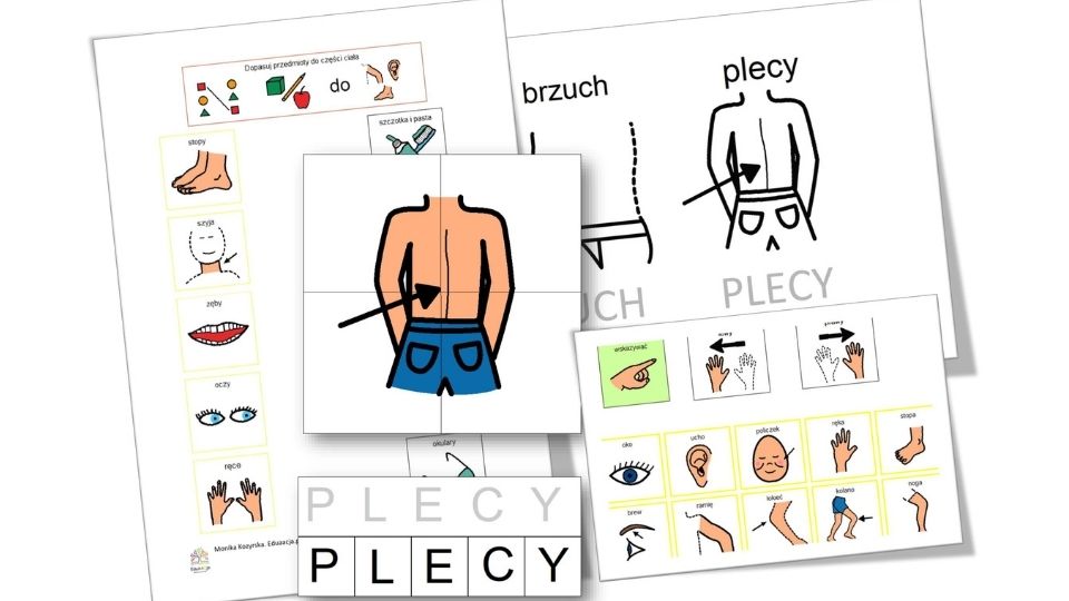 Rozwija: słownik tematyczny, rozumienie schematu ciała, orientację przestrzenną, komunikację AAC, analizę wzrokową.