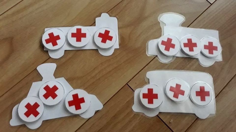 Każdy pojazd ma na odwrocie umieszczone  symbole pomocy tzw. „znaki leczenia”, które będą przyklejane podczas gry na planszy obok sytuacji odpowiadających przeznaczeniu wybranego pojazdu.